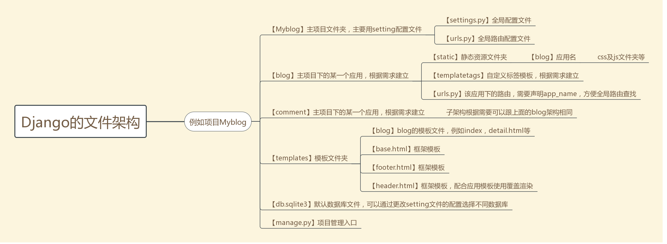 本例已django项目名称为myblog,其下面有2个应用blog和comment介绍: