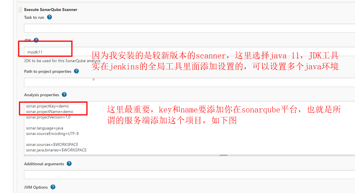 sonar.projectKey=demo sonar.projectName=demo sonar.projectVersion=1.0 sonar.language=java sonar.sourceEncoding=UTF-8 sonar.sources=$WORKSPACE sonar.java.binaries=$WORKSPACE