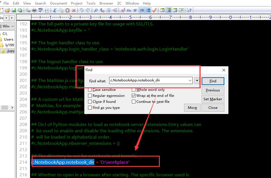 4.2 启用自定义工作目录选项并设置,#号删除即启用该选项。