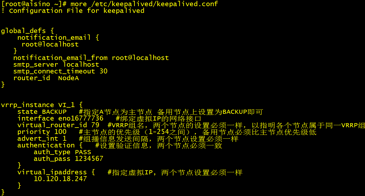 配置实例:主备需要区分的地方:优先级、state、全局模式下router_id