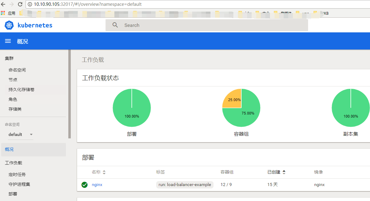 32017就监听在宿主机了,我们可以使用宿主机ip+32017,也就是10.10.90.105:32017访问了,如图: