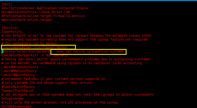 修改docker的配置文件/usr/lib/systemd/system/docker.service,增加一条环境变量配置: EnvironmentFile=-/run/flannel/docker