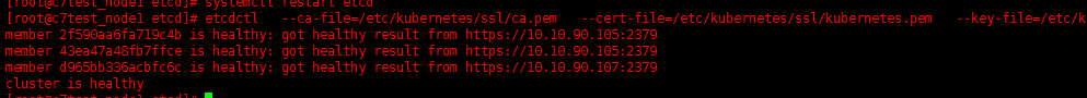[root@kube_master ssl]# etcdctl cluster-health failed to check the health of member 2f590aa6fa719c4b on https://10.10.90.105:2379: Get https://10.10.90.105:2379/health: x509: certificate signed by unknown authority member 2f590aa6fa719c4b is unreachable: [https://10.10.90.105:2379] are all unreachable failed to check the health of member 43ea47a48fb7ffce on https://10.10.90.106:2379: Get https://10.10.90.106:2379/health: x509: certificate signed by unknown authority member 43ea47a48fb7ffce is unreachable: [https://10.10.90.106:2379] are all unreachable failed to check the health of member d965bb336acbfc6c on https://10.10.90.107:2379: Get https://10.10.90.107:2379/health: x509: certificate signed by unknown authority member d965bb336acbfc6c is unreachable: [https://10.10.90.107:2379] are all unreachable cluster is unhealthy