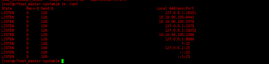 ss -tanl 检查端口,6443和8080端口应该监听成功,代表apiserver安装成功。