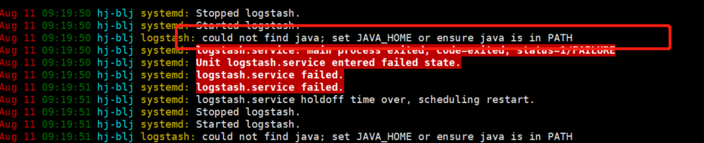 logstash启动报错“could not find java; set JAVA_HOME or ensure java is in PATH”
