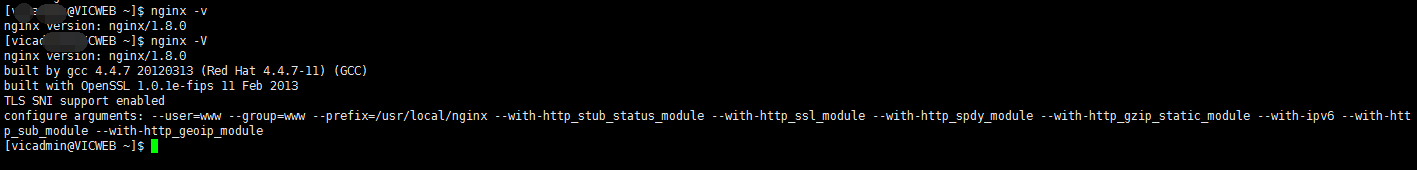 nginx -v //查看版本号 nginx -V //查看版本号和加载模块明细