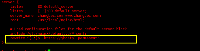 增加如下rewrite操作,并从新加载nginx配置文件,这样就实现了http访问自动调整到https访问,保证访问安全。