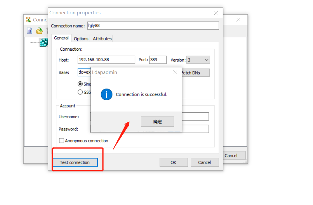 运行软件,连接刚才安装的openldap