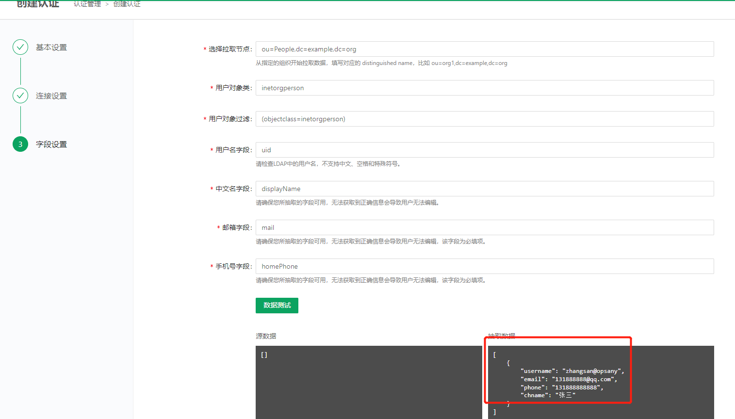不出意外测试是成功的。下一步配置想起的字段映射信息,也就是如何去读取你创建的用户。