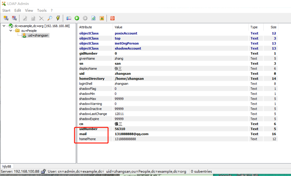 也就是去用户名详细信息那里找对应的字段即可,可能会遇到没有邮箱和电话字段,是因为我们没有给zhangsan设置邮箱和电话,双机zhangsan,在Business和personal里面分别设置 Email Addresses 和 Phone字段,就会看到相应字段名字了,一对一安装即可,点击测试即可看到返回的信息是否获取正确。