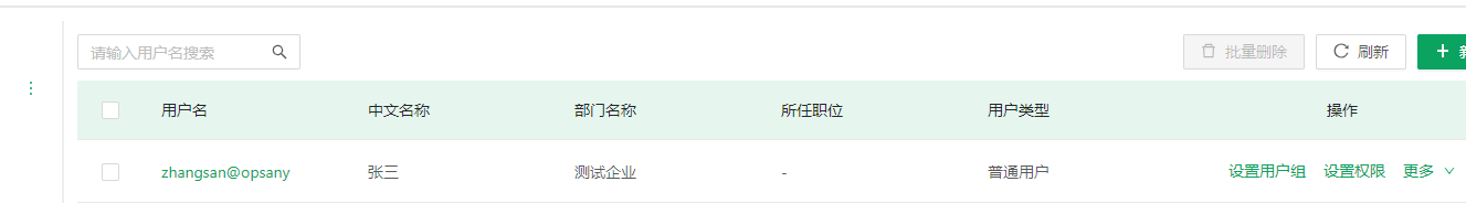 然后就可以在第三方软件的用户管理里面看到zhangsan用户了,对其进行相关的权限管理即可。