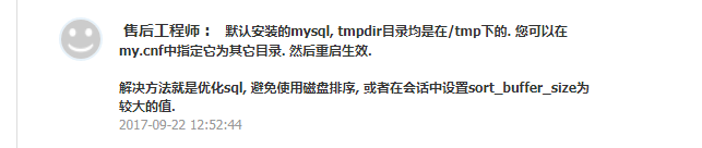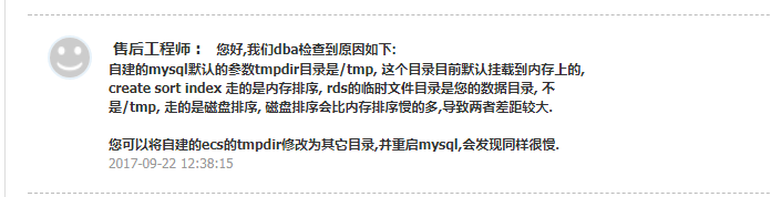 总体的意思呢,我总结下就是说自建库是在ecs,超出sort_buffer_size的内容可以在tmp目录执行,